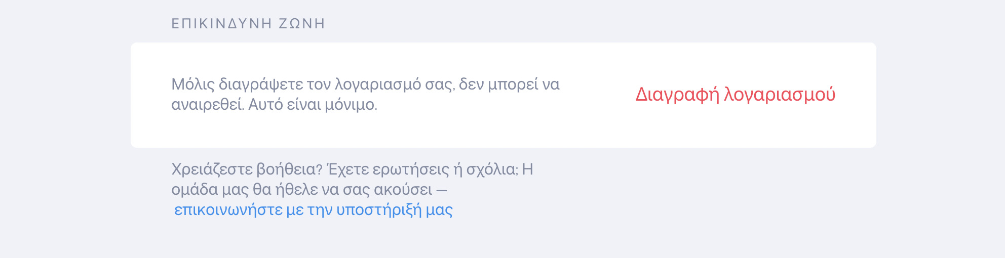 Πώς διαγράφω τον λογαριασμό μου οριστικά;
